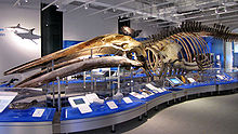 The Natural History Museum in London contains a famous mounted skeleton and life-size model of a blue whale, which were both the first of their kind in the world, but have since been replicated at the University of California, Santa Cruz. Similarly, the American Museum of Natural History in New York City has a full-size model in its Milstein Family Hall of Ocean Life. A juvenile blue whale skeleton is installed at the New Bedford Whaling Museum in New Bedford, Massachusetts.