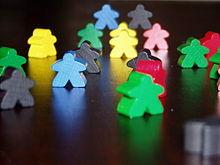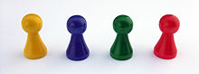 - Game piece (or gamepiece, counter, token, bit, meeple, mover, pawn, man, playing piece, player piece)—a player's representative on the gameboard made of a piece of material made to look like a known object (such as a scale model of a person, animal, or inanimate object) or otherwise general symbol. Each player may control one or more game pieces. Some games involve commanding multiple game pieces (or units), such as chess pieces or Monopoly houses and hotels, that have unique designations and capabilities within the parameters of the game; in other games, such as Go, all pieces controlled by a player have the same capabilities. In some modern board games, such as Clue, there are other pieces that are not a player's representative (i.e. weapons). In some games, pieces may not represent or belong to any particular player. See also: Counter (board wargames)
