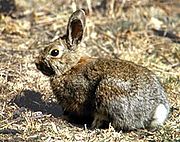 The Snowshoe Hare is a principal prey species of the Bobcat. Rabbits and hares, along with rodents, are taken most often by the cat.