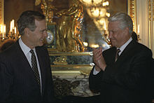Boris Nikolayevich Yeltsin (Russian: Бори́с Никола́евич Е́льцин; IPA: [bɐˈrʲis nʲɪkɐˈlaɪvʲɪtɕ ˈjelʲtsɨn]; 1 February 1931 — 23 April 2007) was a Russian politician and the first President of the Russian Federation, serving from 1991 to 1999.