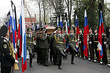 President Putin declared the day of his funeral a national day of mourning, with the nation's flags flown at half mast and all entertainment programs suspended for the day.