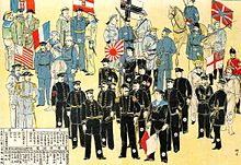 | Forces of the Eight-Nation Alliance (1900 Boxer Rebellion) ![]() Left to right: Britain, United States, Australian, British India, Germany, France, Austria-Hungary, Italy, Japan |