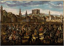 The Kingdom of Hungary was defeated by the Ottoman Empire in the Battle of Mohács in 1526. The Turks besieged and damaged Pressburg but failed to conquer it. Owing to Ottoman advances into Hungarian territory, the city was designated the new capital of Hungary in 1536, becoming part of the Austrian Habsburg monarchy and marking the beginning of a new era. The city became a coronation town and the seat of kings, archbishops (1543), the nobility and all major organisations and offices. Between 1536 and 1830, eleven Hungarian kings and queens were crowned at St. Martin's Cathedral. The 17th century was marked by anti-Habsburg uprisings, fighting with the Turks, floods, plagues and other disasters, which diminished the population.