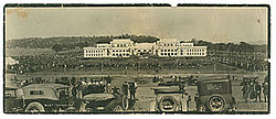 The federal legislature moved to Canberra on 9 May 1927, with the opening of the Provisional Parliament House. The Prime Minister, Stanley Bruce, had officially taken up residence in The Lodge a few days earlier. Planned development of the city slowed significantly during the depression of the 1930s and during World War II. Some projects planned for that time, including Roman Catholic and Anglican cathedrals, were never completed.