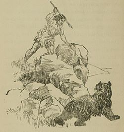 Caveman-like Heraldic " wild men" were found in European iconography for hundreds of years. During the Middle Ages, these creatures were generally depicted in art and literature as bearded and covered in hair, and often wielding clubs and dwelling in caves. While wild men were always depicted as living outside of civilization, there was an ongoing debate as to whether they were human or animal.