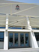 Truman Bodden Sports Complex is a multi-use complex in George Town. The complex is separated into an outdoor, six-lane 25-metre (82 ft) swimming pool, full purpose track and field and basketball/netball courts. The field surrounded by the track is used for football matches as well as other field sports. The track stadium holds 3,000 people.
