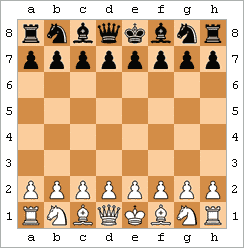Initial position: first row: rook, knight, bishop, queen, king, bishop, knight, and rook; second row: pawns