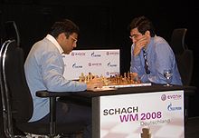 The current World Chess Champion Viswanathan Anand (left) playing chess against his predecessor Vladimir Kramnik