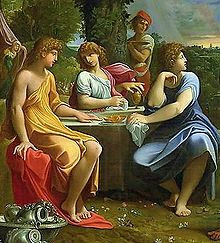 Three angels hosted by Abraham by Ludovico Carracci: The three angels represent the three persons of God.