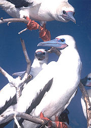 Christmas Island is a focal point for sea birds of various species. Eight species or subspecies of sea birds nest on the island. The most numerous is the Red-footed Booby that nests in colonies, in trees, on many parts of the shore terrace. The widespread Brown Booby nests on the ground near the edge of the seacliff and inland cliffs. Abbott's Booby (listed as endangered) nests on tall emergent trees of the western, northern and southern plateau rainforest. The Christmas Island forest is the only nesting habitat of the Abbott's Booby left in the world. The endemic Christmas Island Frigatebird (listed as endangered) has nesting areas on the north-eastern shore terraces and the more widespread Great Frigatebirds nest in semi-deciduous trees on the shore terrace with the greatest concentrations being in the North West and South Point areas. The Common Noddy and two species of bosuns or tropicbirds, with their brilliant gold or silver plumage and distinctive streamer tail feathers, also nest on the island.