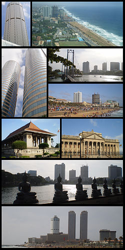Clockwise from top left: BOC Tower, Colombo Skyline, Colombo Skyline (Gangaramaya Temple), Colombo Skyline (Galle Face), Old Parliament, Colombo Skyline (Gangaramaya Temple), BOC Tower and WTC Twin Tower, Independence Square, WTC Twin Tower