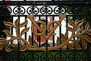 The VOC (Verenigde Oostindische Compagnie) logo of Dutch East India Company on the gates of Wolvendaal church