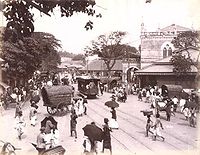 Colombo street in the early 20th century with a tramcar