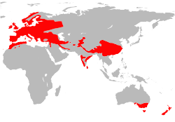 • T. m. merula, the nominate subspecies, breeds commonly throughout much of Europe from Iceland, the Faeroes and the British Isles east to the Ural Mountains and north to about 70 N, where it is fairly scarce. A small population breeds in the Nile valley. Birds from the north of the range winter throughout Europe and around the Mediterranean including Cyprus and North Africa. The introduced birds in Australia and New Zealand are of the nominate race.