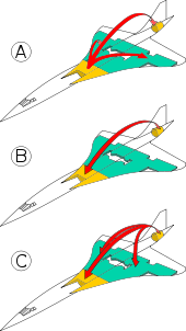 The intake design for Concorde’s engines was especially critical. Conventional jet engines can take in air at only around Mach 0.5; therefore the air has to be slowed from the Mach 2.0 airspeed that enters the engine intake. In particular, Concorde needed to control the shock waves that this reduction in speed generates to avoid damage to the engines. This was done by a pair of intake ramps and an auxiliary spill door, whose position moved in-flight to slow transiting air.
