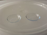A corrective contact lens is a lens designed to improve vision. In many people, there is a mismatch between the refractive power of the eye and the length of the eye, leading to a refraction error. A contact lens neutralizes this mismatch and allows for correct focusing of light onto the retina. Conditions correctable with contact lenses include near (or short) sightedness ( myopia), far (or long) sightedness ( hypermetropia), astigmatism and presbyopia. Contact wearers must usually take their contacts out every night or every few days, depending on the brand and style of the contact. Recently there has been renewed interest in orthokeratology, the correction of myopia by deliberate overnight flattening of the cornea, leaving the eye without contact lens or eyeglasses correction during the day.
