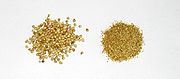 If the fruit is obtained in its natural form, it can later be dried in the sun. Most commonly, it is bought as whole dried seeds, but it can also be found as a powder. When grinding at home, it can be roasted or heated on a dry pan briefly to enhance the aroma before grinding it in an electric grinder or with a mortar and pestle; ground coriander seeds lose their flavour quickly in storage and are best ground as only needed. For optimum flavour, whole coriander seed should be used within six months, or stored for no more than a year in a tightly sealed container away from sunlight and heat.