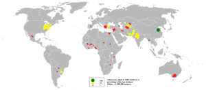 Current estimates for world production are about 25 million tonnes annually, accounting for 2.5% of the world's arable land. China is the world's largest producer of cotton, but most of this is used domestically. The United States has been the largest exporter for many years.