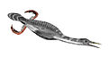 The largest air-breathing survivors of the event, crocodilians and champsosaurs, were semi-aquatic and had access to detritus. Modern crocodilians can live as scavengers and can survive for months without food and go into hibernation when conditions are unfavourable, and their young are small, grow slowly, and feed largely on invertebrates and dead organisms or fragments of organisms for their first few years. These characteristics have been linked to crocodilian survival at the end of the Cretaceous.