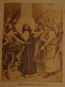 ![]() Mexican government forces publicly hanged Cristero rebels on telegraph poles in Jalisco, Mexico. The tactic was used throughout the war, with bodies often remaining on the poles until the pueblo or town renounced public religious practice.  |