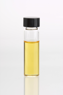 Lemongrass (Cymbopogon flexuosus) essential oil in clear glass vial