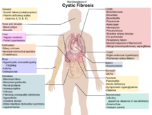 Cystic fibrosis (also known as CF or mucoviscidosis) is an autosomal recessive genetic disorder that affects most critically the lungs, and also the pancreas, liver, and intestine. It is characterized by abnormal transport of chloride and sodium across an epithelium, leading to thick, viscous secretions.