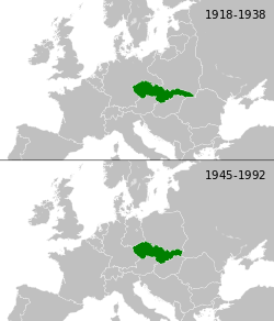 Czechoslovakia (or Czecho-Slovakia; Czech and Slovak: Československo, Česko-Slovensko) was a sovereign state in Central Europe that existed from October 1918, when it declared its independence from the Austro-Hungarian Empire, until its peaceful dissolution into the Czech Republic and Slovakia on 1 January 1993.