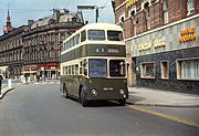 A Derby Corporation trolleybus in Victoria Street, Derby, in 1967. The trolleybus system closed on 9 September 1967.