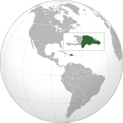 The Dominican Republic ( / d ə ˌ m ɪ n ɨ k ən r ɨ ˈ p ʌ b l ɪ k /; Spanish: República Dominicana [reˈpuβlika ðominiˈkana], is a nation on the island of Hispaniola, part of the Greater Antilles archipelago in the Caribbean region. The western third of the island is occupied by the nation of Haiti, making Hispaniola one of two Caribbean islands, along with Saint Martin, that are shared by two countries. Both by area and population, the Dominican Republic is the second largest Caribbean nation (after Cuba), with 48,445 square kilometres (18,705 sq mi) and an estimated 10 million people, one million of which in the capital city, Santo Domingo.