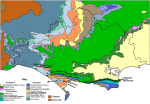 Dorset covers an area of 2,653 square kilometres (1,024 sq mi) and contains considerable variety in its underlying geology, which is partly responsible for the diversity of landscape. A large percentage (66%) of the county comprises either chalk, clay or mixed sand and gravels. The remainder is less straightforward and includes Portland and Purbeck stone, other limestones, calcareous clays and shales. Portland and Purbeck stone are of national importance as a building material and for restoring some of Britain's most famous landmarks. Almost every type of rock known from the Early Jurassic to the Eocene epochs can be found in the county.
