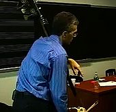 ![]() Side and front views of a modern double bass with a French-style bow  |