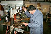 - the angle of the spindle is fixed in relation to the table, allowing holes to be drilled accurately and repetitively.