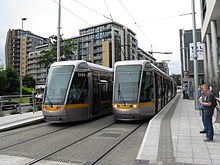 Luas trams at the Tallaght terminus.