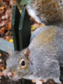 The eastern gray squirrel (Sciurus carolinensis) is a tree squirrel native to the eastern and midwestern United States and to the southerly portions of the eastern provinces of Canada. The specific epithet, carolinensis, refers to the Carolinas, where the species was first recorded and where the animal is still extremely common. The native range of the eastern gray squirrel overlaps with that of the fox squirrel (Sciurus niger), with which it is sometimes confused, although the core of the fox squirrel's range is slightly more to the west.