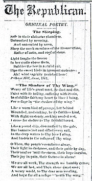 "Safe in their Alabaster Chambers –," entitled "The Sleeping," as it was published in the Springfield Republican in 1862.