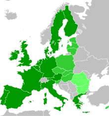 The enlargement of the European Union is the process of expanding the European Union (EU) through the accession of new member states. This process began with the Inner Six, who founded the European Coal and Steel Community (the EU's predecessor) in 1952. Since then, the EU's membership has grown to twenty-seven with the most recent expansion to Bulgaria and Romania in 2007. A scheduled expansion in 2013 will add Croatia to the union.