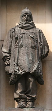 During the ensuing decades Shackleton's status as a polar hero was generally outshone by that of Captain Scott. Scott's polar party had by 1925 been commemorated in Britain alone by more than 30 monuments, including stained glass windows, statues, busts and memorial tablets. A statue of Shackleton designed by Sir Edwin Lutyens was unveiled at the Royal Geographical Society's Kensington headquarters in 1932, but public memorials to Shackleton were relatively few. Likewise, the printed word saw much more attention given to Scott–a forty-page booklet on Shackleton, published in 1943 by OUP as part of a "Great Exploits" series, is described by cultural historian Stephanie Barczewski as "a lone example of a popular literary treatment of Shackleton in a sea of similar treatments of Scott". This disparity continued into the 1950s.