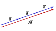 Intuitively, multiplying by a scalar r stretches a vector out by a factor of r. Geometrically, this can be visualized (at least in the case when r is an integer) as placing r copies of the vector in a line where the endpoint of one vector is the initial point of the next vector.