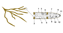 - The plasmodesmata, linking pores in the cell wall that allow each plant cell to communicate with other adjacent cells; this is different from the functionally analogous system of gap junctions between animal cells.