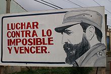 | Castro in front of a Havana statue of Cuban national hero José Martí in 2003. | |