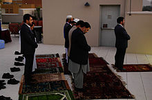 Afghan politicians and foreign diplomats praying (making salat) at the U.S. Embassy in Kabul, Afghanistan.