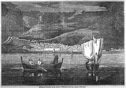 A cityscape of Funchal, 1834 as seen from the Bay.