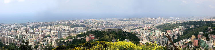 | A collage of Genoa, Clockwise from top left:Torre della Lanterna, Piazza de Ferrari, Galleria Mazzini, Brigata Liguria Street, View of San Teodoro from Genoa Port | |||