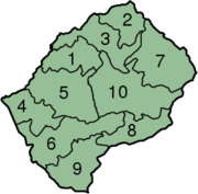 Lesotho is divided into 10 administrative districts, each with its own capital, called a camptown. The districts are further subdivided into 80 constituencies, which consist of 129 local community councils.