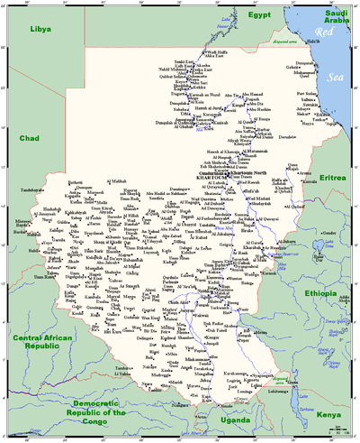 Sudan is located in northeastern Africa. It borders the Red Sea between Egypt on the north and Eritrea and Ethiopia on the southeast; it borders Chad and the Central African Republic on the west. It is the largest country in Africa.