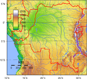 Geography: straddles Equator; very narrow strip of land that controls the lower Congo River and is the only outlet to South Atlantic Ocean; dense tropical rainforest in central river basin and eastern highlands