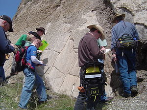 Students examining the Wasatch Fault near Salt Lake City, Utah.