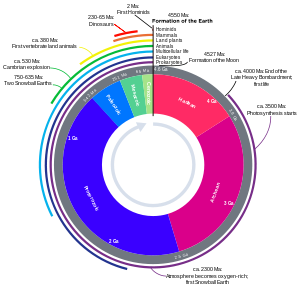 • c. 4 Ga: End of Late Heavy Bombardment, first life