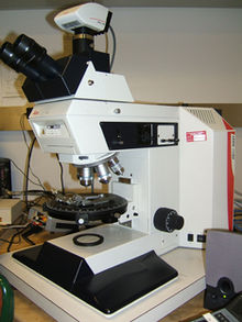 A petrographic microscope, which is an optical microscope fitted with cross- polarizing lenses, a conoscopic lens, and compensators (plates of anisotropic materials; gypsum plates and quartz wedges are common), for crystallographic analysis.