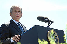 Eight months into Bush's first term as president, the September 11, 2001 terrorist attacks occurred. In response, Bush announced the War on Terror, an international military campaign which included the war in Afghanistan launched in 2001 and the war in Iraq launched in 2003. In addition to national security issues, Bush also promoted policies on the economy, health care, education, and social security reform. He signed into law broad tax cuts, the PATRIOT Act, the No Child Left Behind Act, the Partial-Birth Abortion Ban Act, and Medicare prescription drug benefits for seniors. His tenure saw national debates on immigration, Social Security, electronic surveillance, and enhanced interrogation techniques. He announced the U.S. would not implement the Kyoto Protocol on global warming, which had been signed by the previous administration but never ratified by the Senate.